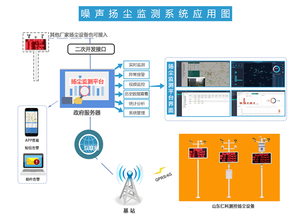 噪聲揚塵監(jiān)測系統(tǒng)由前端數據監(jiān)測站、通訊服務器和環(huán)境監(jiān)測云平臺構成,能夠對施工現(xiàn)場的環(huán)境進行實時在線監(jiān)測與預警監(jiān)管,及時反饋工地噪聲、揚塵的情況。