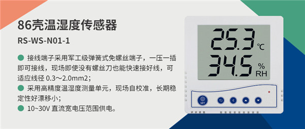 針對整個機房溫濕度監(jiān)測,建大仁科推薦安裝86殼溫濕度傳感器,來監(jiān)測各機房環(huán)境實時溫度和濕度,當數(shù)據(jù)超限時,進行報警并聯(lián)動空調控制器對溫度進行調節(jié)。