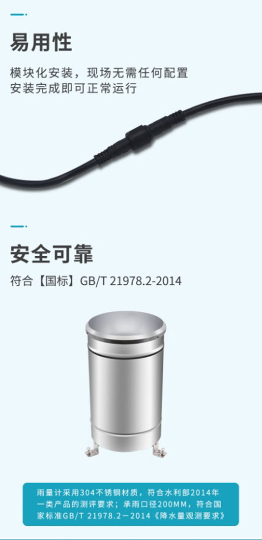 默認(rèn)脈沖當(dāng)量:0.5mm 可上傳瞬時(shí)雨量、日雨量、當(dāng)前雨量及累計(jì)雨量值。 |